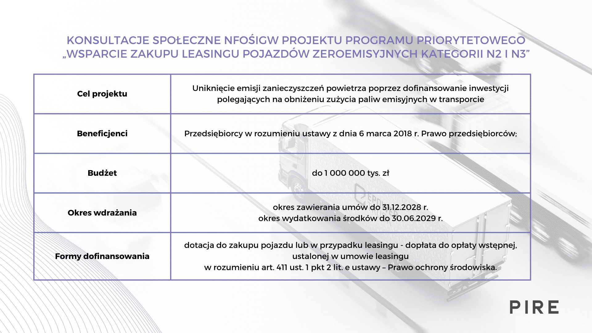 Narodowy Fundusz Ochrony Środowiska i Gospodarki Wodnej przedstawił projekt programu priorytetowego „Wsparcie zakupu lub leasingu pojazdów zeroemisyjnych kategorii N2 i N3”
