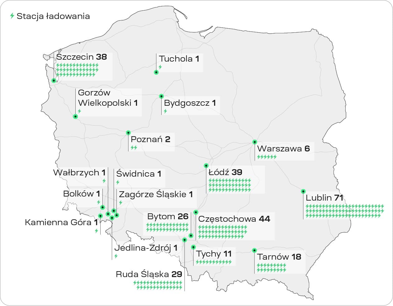 Lokalizacja stacji ładowania ECOFACTOR w Polsce