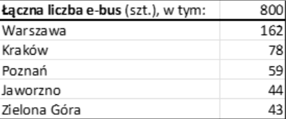 Suma elektrycznych autobusów w Polsce (stan na styczeń 2023)