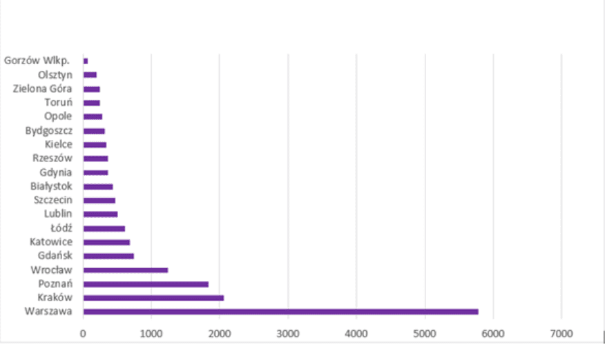 Spośród miast powyżej 100 tys. mieszkańców, najwięcej samochodów zeroemisyjnych porusza się po Warszawie, Krakowie oraz Poznaniu. Zarówno Kraków jak i Warszawa konsekwentnie kupują zeroemisyjne autobusy, a także podjęły decyzję o wprowadzeniu Stref Czystego Transportu.