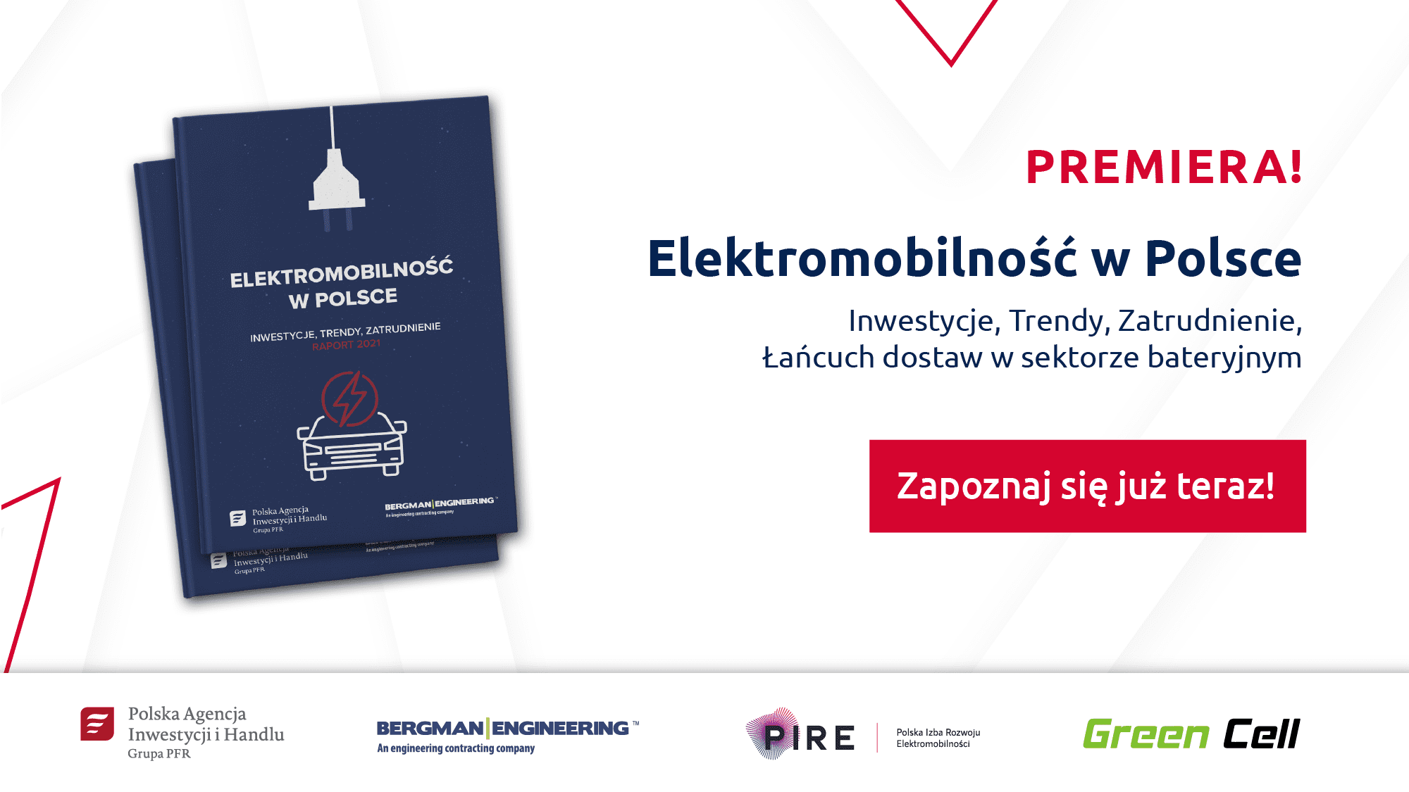 Raport branżowy „Elektromobilność w Polsce: Inwestycje, Trendy, Zatrudnienie”, który powstał we współpracy Polskiej Agencji Inwestycji i Handlu, Bergman Engineering oraz Polskiej Izby Rozwoju Elektromobilności, przybliża stan rozwoju branży w Polsce, pokazuje kluczowe inwestycje, trendy, kierunki rozwoju, a także zapotrzebowanie rynku na wysoko wyspecjalizowanych pracowników. To kompleksowy zbiór informacji o sektorze, który jest inspiracją dla odbiorców do dalszych działań i poszukiwań szans biznesowych. Elektromobilność towarzyszy nam przecież w Polsce od dłuższego czasu i przyszedł czas na wykorzystanie nisz biznesowych oraz wejścia na wyższy poziom rozwoju technologicznego przy wykorzystaniu wiedzy na temat łańcucha wartości.